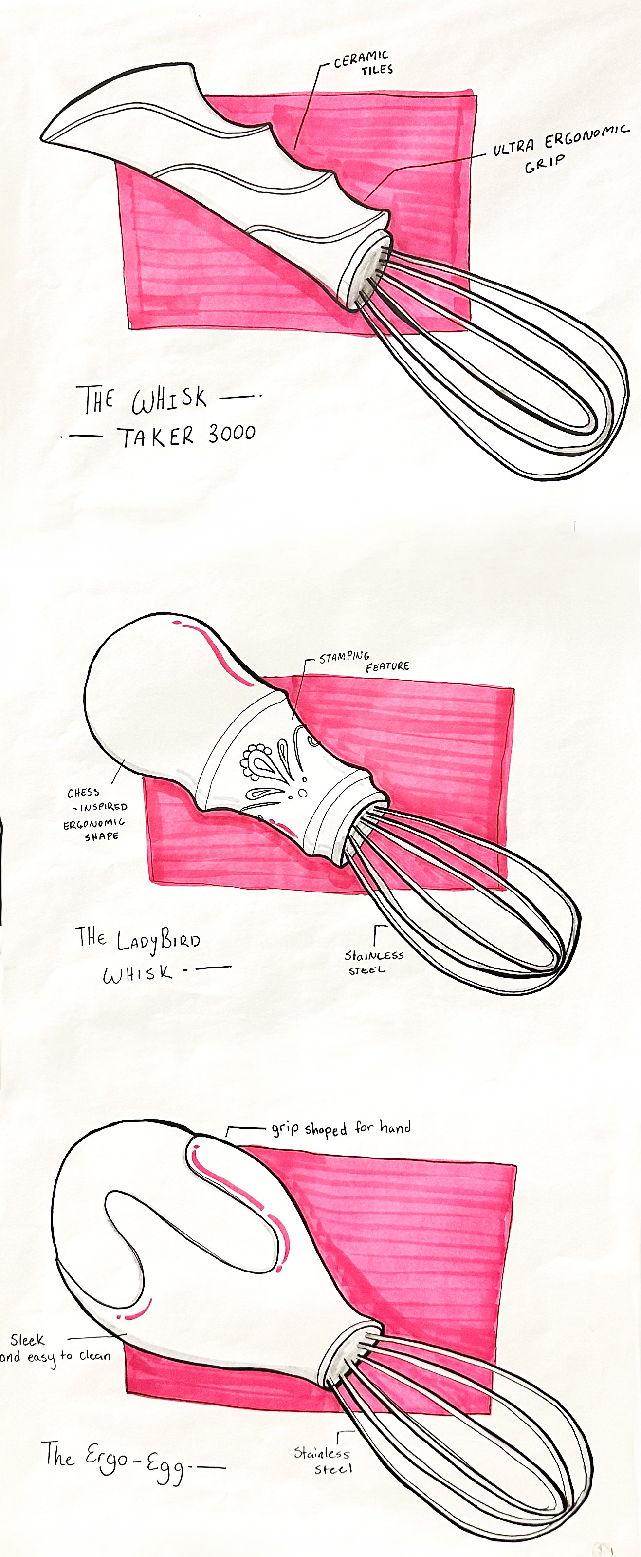 I was tasked to redesign a better whisk, finding a specific user and identifying their wants and needs. I interviewed my friend and aspiring baker, Mia. Mia is a 2nd year graphic design student at Drexel who loves colorful posters, baking cookies, and vintage art.